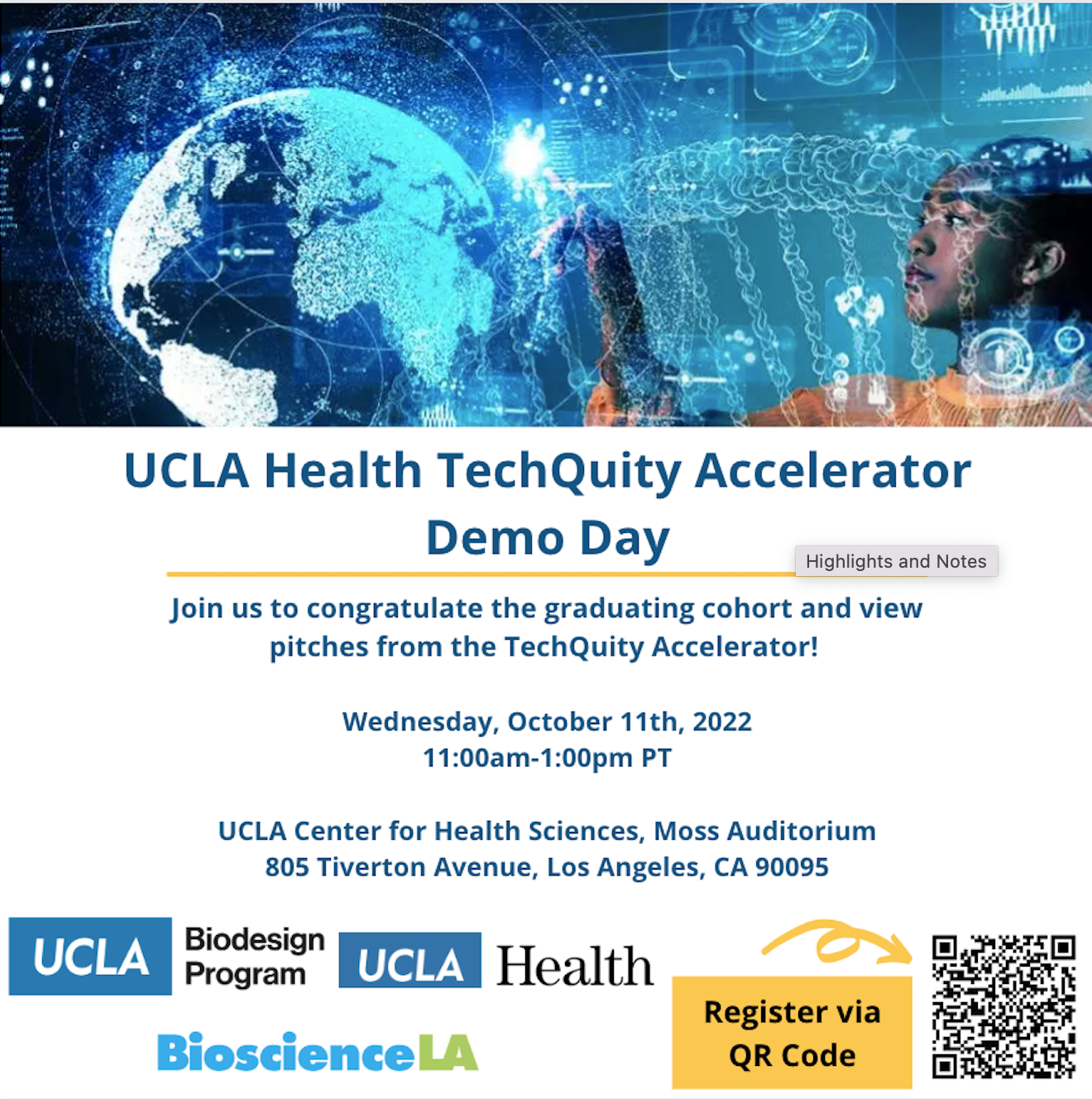 TechQuity seeks to advance health equity and community health resiliency for populations most impacted through the COVID-19 pandemic by working with mission-driven startups. Join on Tuesday, October 11, 2022 for Demo Day.